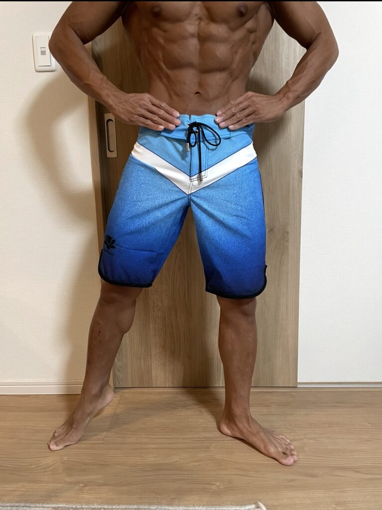 これから大会シーズン、メンズフィジーク選手にとってボードショーツ選びは楽しい時間ですがJBBFはルールが厳しく試着して確認できないものを買うのは不安・・そんな気持ちもありながら購入したので