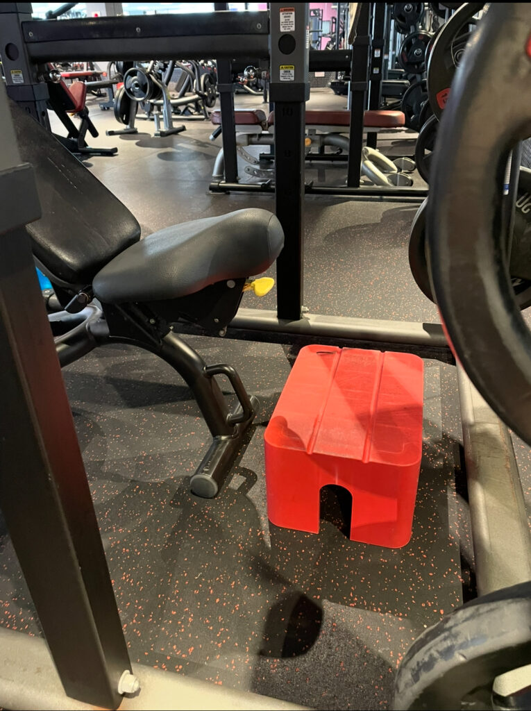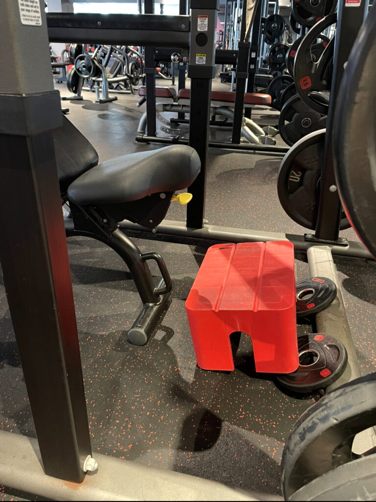 その際、ジムにあるこのような台を設置してしっかり足裏全体をつけれるようにします。